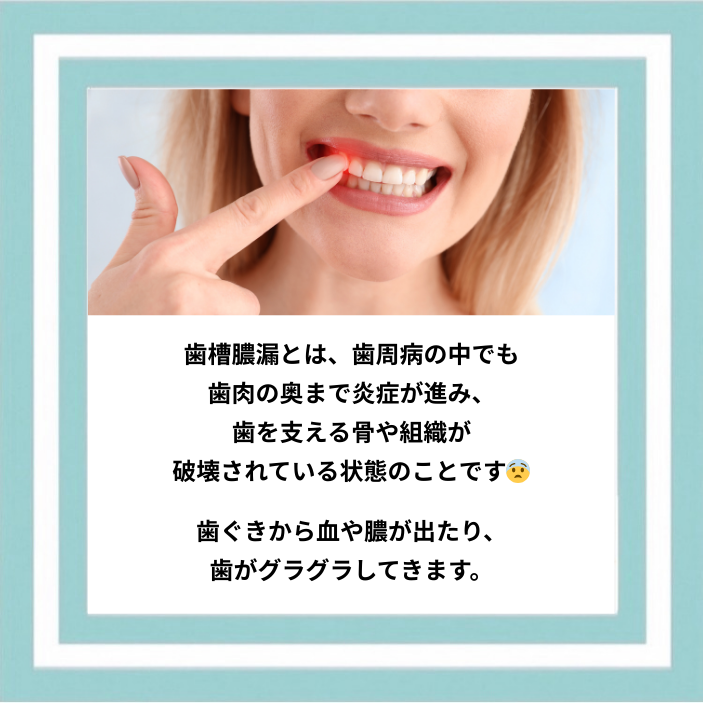 歯槽膿漏とは、歯周病の中でも歯肉の奥まで炎症が進み、歯を支える骨や組織が破壊されている状態のことです😨