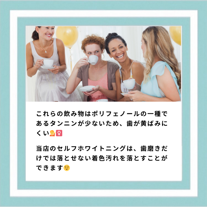 以下の飲み物はポリフェノールの一種であるタンニンが少ないため、歯が黄ばみにくいのです💁♀️