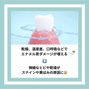乾燥、温度差、口呼吸などでエナメル質ダメージが増える⚠️