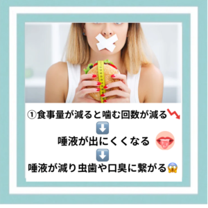 →唾液が減ると虫歯や口臭のリスクが上がる