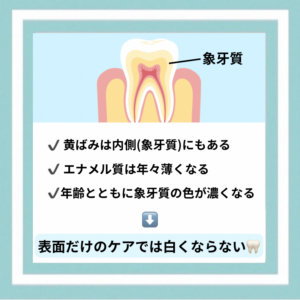 当店の医療級セルフホワイトニングは、歯の表面だけでなく、